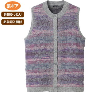 ●素材/アクリル52%、ポリエステル22%、ナイロン20%、モヘア6%、裏ボア●生産国/中国●洗濯機可●身幅ゆったり●名前記入欄付き●婦人用・裏ボアだからあったかい!・かすり調でカラフルな色合いがステキ。・ゆったりとした身幅で