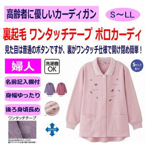 シニア 服 高齢者 レディース 女性 ポロカーディガン マジックテープ 後ろ身頃長め のびのび 裏起毛 婦人 用 母の日 敬老の日 誕生日 クリスマスプレゼント 入所 入院 シニア