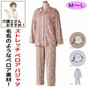 ストレッチベロアパジャマ パープル・ネイビー M・L 暖かなベロア素材のパジャマで暖かく動きやすい介護用 パジャマ ストレッチ ベロアパジャマ M L 秋冬 あたたかい レディース 婦人 ...