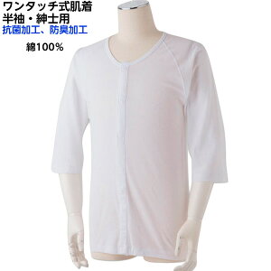 【特徴】 腕、肩の骨折、打身の治療中の方に、診察や点適時に便利。 ◎ワンタッチ肌着◎ ボタンをかける手間を全面解消した、丸型マジック式ボタン肌着。 [肌へのやさしさ] 品質の基本は素材にこだわること。高級エジプト綿60単糸を使っ