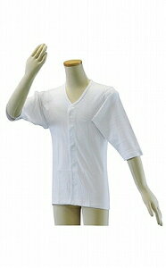 前開き マジックテープ シャツ 紳士 介護 下着 半袖 インナー 日清紡 モイスキン加工 国産 吸湿 抗菌 防臭 消臭 安全 ソフト マジックテープ 前後差設計 コットン 綿100% 男性用 メンズ 紳士
