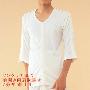 ワンタッチ肌着 前開き両肩腕開き7分袖 前開きで、しかも肩から腕にかけても、マジックテープで開く肌着です ◎ワンタッチ肌着◎ ボタンをかける手間を全面解消した、丸型マジック式ボタン肌着。 [肌へのやさしさ]...