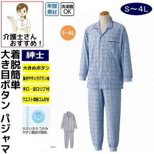 ■ サイズ表 ■ 商品詳細情報 ■ 商品名 簡単着替えパジャマ(紳士用) (PA04G) ■ 商品特徴 【おむつ交換に便利な両脇が全開できるファスナー付き!】 ・おむつ交換が簡単 ズボンの両脇に全開できるファスナーが付いているので、