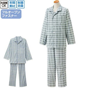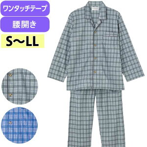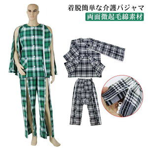 長袖 マジックテープ 上ワンタッチテープ 全開 フルオープン ファスナー おむつ交換 チェック柄 格子柄 介護衣料 入院用 父の日 敬老の日 誕生日 入所 入院 シニア 介護用のパジャマ
