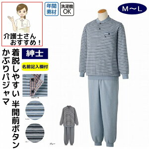 ・長袖、長ズボンの紳士用介護パジャマ。 ・上着の前開き部分、袖口、ズボン腹部、ズボン裾口がワンタッチテープ仕様なので着脱簡単。 ・上着の前開き部分のボタンは飾りボタンです。 ・着用したままで各種の処置が行え、お世話しやす