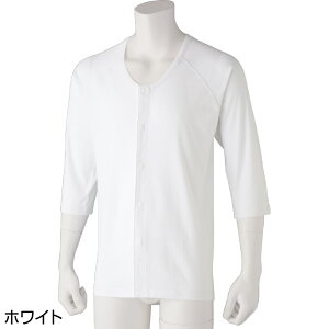 コメント 丸型マジック式で着脱らくらくな七 分袖前開き介護シャツ。清潔・爽や かな抗菌防臭加工、肌にやさしい綿 100%で快適。脱ぎやすい肩の凝 らないラグランカットもポイントで す。 特長 ・着脱らくらくマジック式肌着 ・前開き7分