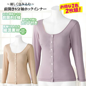 く快適肌着、2枚組。7分袖。・片手でも着脱しやすく、従来の被りタイプが苦手な方や、通院、術後にもおススメです。・ゆったりとした身幅、袖口で着心地バツグ