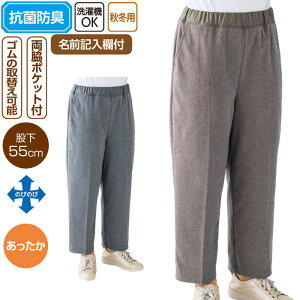 引き上げやすく、ずり落ちにくい はきやすいパンツ 室内外でリラックスウェアーとして最適! 裏地無し。両脇ポケット付き。 【カラー】モカ・ライトグレー 【素 材】ポリエステル80%・綿20% 【サイズ】M(64〜70cm)・L
