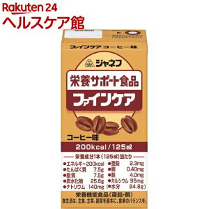 ●ほどよい甘さの「ファインケア」 ●食事の量が少ない方への栄養補給に。 ●1本(125ml)当たり200kcal、たんぱく質7.5g、鉄4.0mg、亜鉛2.3mg。 ●エネルギーだけでなく、身体をつくる大切な栄養素であるたんぱく質の摂取も