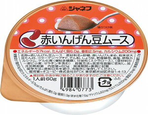 【赤いんげん豆ムースの商品説明】高齢者に不足しがちなたんぱく質、亜鉛、カルシウムを補給できるやわらかく仕上げたおいしいムースです。■規格・入数 60g × 30■分類 その他調理品 ■機能 たんぱく強化、カルシウム強化、銅・亜鉛強化