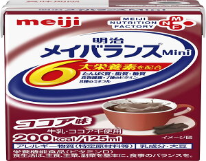 1本200kcal/125mlの少量で高エネルギー設計商品紹介。●明治メイバランスMiniシリーズは、通常の食品だけでは十分な栄養が摂れない方の、食事をサポートする食品です。