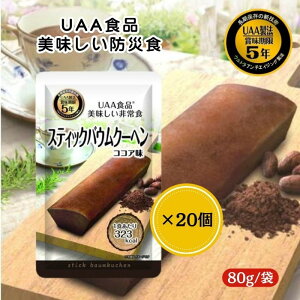 ■ 商品説明【商品詳細】 いつでもどこでも美味しい非常食です。 ●ふんわりしっとりの食感でくちどけの良いスティックタイプのバウムクーヘン(ココア味)。 ●1袋で323kcal。手軽に美味しくエネルギー補給。 ●常温のまま、温めずにす