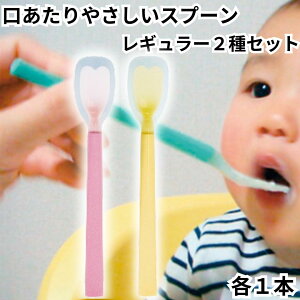 口あたりやさしいスプーン レギュラーサイズ(中) ピンク・イエロー 口元や歯茎へのあたりがやさしいスプーンです【2種セット】各1本 合計2本 シリコンゴムの中にコシのあるナイロン樹脂の芯を埋め込んだ新しいスプーンです。 先端は柔