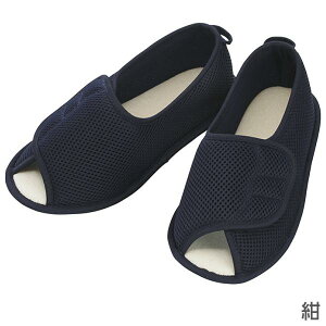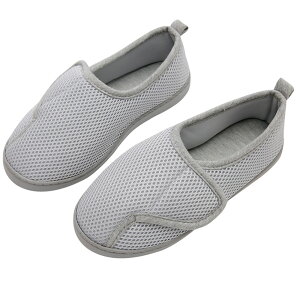 ・むくみや腫れがある時でも、お洒落にゆったりと楽に履けて足が疲れにくい。ワッフル生地で足元さわやか。 ・内側スリットで大きく開き足入れがスムーズ。さらにむくみや変形に対応。 ・足の状態に合わせて、幅広ベルトで簡単に調整
