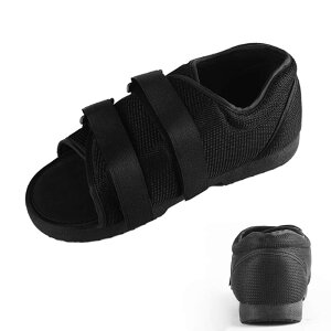 【歩行補助】独特の形状が歩行時のつま先の圧力を軽減し、ギプス固定時の足を引きずる足取りを解消し、負傷箇所の負担を軽くします。粗めの裏地が使用されているため、滑りにくく安定した歩行が可能です。靴のソールは滑り止め加工を採用しているため、...