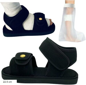 ギプスサンダル シューズ 片足 左右兼用 靴 歩行補助 ギプスカバー マジックテープ 骨折 怪我 ケガ ズレない ムレない 軽い 黒 サポート 松葉杖 調整可能 滑りにくい 入院 リハビリ 介護
