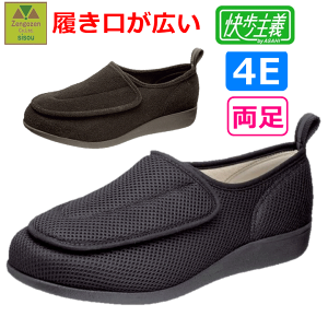 [幅広4E設計] 窮屈な締め付け感からの解放、足幅に合わせた4Eワイド形状の「介護シューズ」は、むくみや外反母趾がある方にもフィットするゆとり空間を実現。通気性の高い素材が蒸れを軽減し、介護が必要な方のデリケートな足元を優しくサポート...