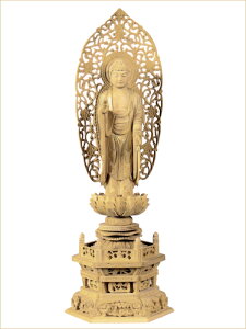 8角台・華鬘台のどちらかをお選び下さい。 材質:総金箔 (木製) 宗派:禅宗 (曹洞宗・臨済宗) 用 台:8角/華鬘台 光背:唐草光背 寸法:2寸・8角台=高21.8×巾10.0×奥9.2 cm / 華鬘台=高25.0×巾10.6×奥...