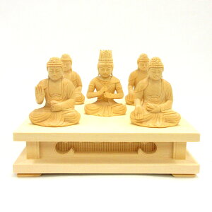 【総高13cm(台高5cm)、台幅20cm、台奥行き20cm】五智如来大日如来の総徳を分けて四仏に現し、合わせて五仏とし、諸菩薩・諸明王の根本とする。金胎両部曼荼羅の中央大日如来と四方の四仏のこと。 金剛界曼荼羅では大日・