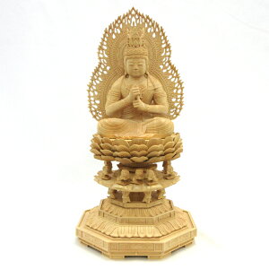 製品詳細 大日如来像 火焔後背 蓮華座 白木製 真言宗 御本尊 1.5寸 大仏師 帆刈黌童(ほかり こうどう)監修のご本尊シリーズ。一木造り、やわらかな木肌の白木製お仏像。モダン仏壇やミニ仏壇にもご安置しやすい大きさ...