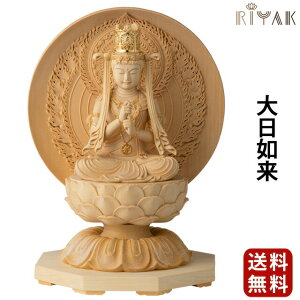 【材質:桧木】 【総高35cm、幅16.5cm、奥行き12cm】大日如来密教の根本聖典たる金剛頂経及び大日経の教主にして金胎両部曼荼羅界の主尊。宇宙一切の森羅万象の本体となし、過去、現在、未来の三世において常恒不易の真如となす...