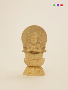 製品詳細 大日如来像 火焔後背 蓮華座 白木製 真言宗 御本尊 3寸 大仏師 帆刈黌童(ほかり こうどう)監修のご本尊シリーズ。一木造り、やわらかな木肌の白木製お仏像。モダン仏壇やミニ仏壇にもご安置しやすい大きさ...