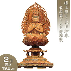 寸法:高さ19.5cm×巾11.1cm×奥行9.3cm 身丈 2寸(6cm)材質:白檀製極上彫り仕上げお仏壇においては、真言宗のご本尊として安置されます。※ 納期が2ヶ月位かかる場合がありますので、お急ぎの場合はお問合せください。...