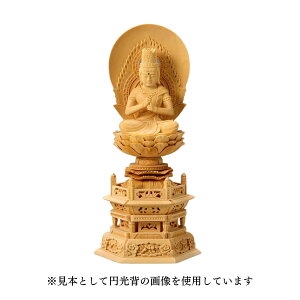 しています 主に真言宗のご本尊として祀られる大日如来のお仏像です。虫が付きにくく耐久性に優れた桧を使用し、職人が1体1体丁寧に仕上げました。 光背(お仏像の背後)は火炎光背