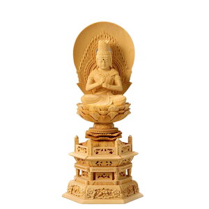 製品詳細 大日如来像 唐草光背 六角台座 白木製 真言宗 御本尊 2.5寸 大仏師 帆刈黌童(ほかり こうどう)監修のご本尊シリーズ。一木造り、やわらかな木肌の白木製お仏像。モダン仏壇やミニ仏壇にもご安置しやすい大きさ...