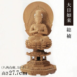 御仏像「大日如来 楠 八角台座 円後背 3.0寸」金泥付 商品説明【商品コード:2918】■商品詳細●寸法 3.0寸:総高さ 約27.7cm、幅 約15.5cm、奥行 約13.2cm●材質:楠●宗派:真言宗...