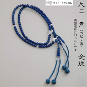 幅広く巡礼にお使いいただける百八玉、本連の念珠です。ラピスラズリ風の色あいで、老若男女問わずお使いいただけます。 親玉のレンズを覗くと弘法大師の御姿が見えます。尺二寸。プラスチック。