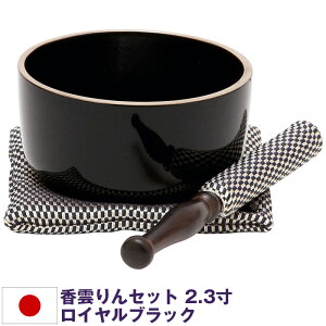 国産仏具 りんセット 『香雲りんセット2.3寸 ロイヤルブラック』 艶のある深く美しい黒色を纏ったおりんセットです。敷物とりん棒の色は、かわいい市松格子柄でコーディネートいたしました。 《セット内容》...
