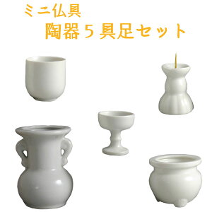 ◆陶器製のシンプルな仏具5点セットです ミニ仏壇・小型仏壇にぴったりのミニサイズ 白い陶器のやわらかな質感 とにかくお求めやすくシンプルな仏具をご所望の方におすすめ ■内容・サイズ: 仏器:4.4cm...