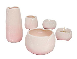 香 炉 高55×φ90ミリ湯のみ 高53×φ55ミリローソク立て サイズ:高30×φ60ミリ仏 器 高30×φ60ミリ花 立 高112×φ56ミリ色合いが淡いピンクでとってもかわいいセットです。 お仏壇が無くても、手を合わせる気持ちが...