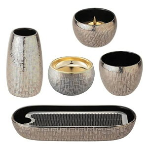 仏飯器(お茶碗)、茶湯器(湯呑)、せんこう立ての5点仏具セットです。お仏壇でのお参りの他、お墓まいりにもご使用いただけます。ミニサイズの、おしゃれでモダンな仏具です。