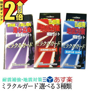 耐震グッズ【ミラクルガード】 商品説明 この「ミラクルガード」シリーズは、地震転倒抑制グッズ(マジックガード)シリーズを仏壇専用に商品化したものです。 従来の(マジックガード)に使用している高係合強力成型面ファスナー(マ