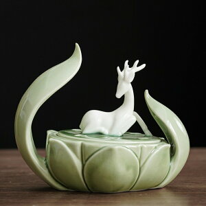 香炉です。カラー:グリーン、ダークグリーン蓮花と鹿のデザイン、お好きな香りを焚くと禅の境地が溢れ、仏壇と茶室用に最適。蓋付き、灰の舞い