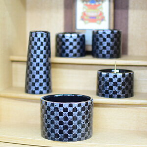 美濃焼】モダン仏具セット『ゆい花』陶器製 色:ブラックパール 丸香炉 5点セット…花立/香炉/火立/茶湯器/仏器(仏飯器)(j1271-1-2)陶器製ミニ仏具5点セット(香炉灰付)湯呑、仏飯器、ローソク立...
