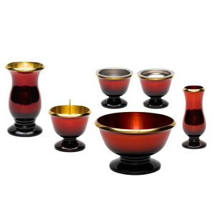 香炉:高5.2×径8.8 湯呑:高4.9×径5.4 ローソク立:高4.9×径5.9 仏器:高5.1×径5.1 花瓶:高10.1×径5.3