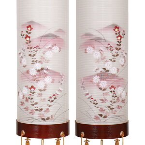 寸法:高さ92cm×巾25cm 全長 約140cm(上部の取り付け環から下部の房先まで) 輪:紙製黒檀調 火袋:和紙張(芙蓉に萩) 電装:LEDローソク電池灯付 1台に単4電池2個使用(テスト用電池4個付き)<br