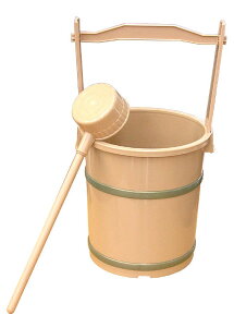 プラスチック手桶セットです。■材質 手桶本体:ポリプロピレン ひ杓:持手(木材)PS。■サイズ 直径190mm(内径)×高さ410mm。■容量 約4リットル。■重さ 739g。■製造 日本。