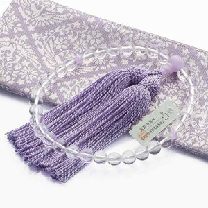 仏壇屋 滝田商店 京念珠 数珠 女性用 本水晶 紅水晶(ローズクォーツ)8mm玉 正絹房 数珠袋付 すべての宗派で使える 証明書付