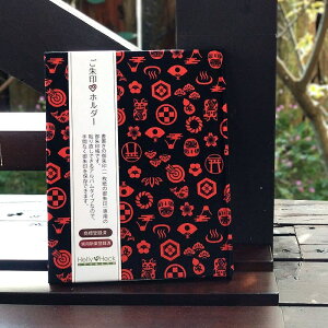 書き置き御朱印専用の御朱印を貼付して保管しておくための日本初の「ご朱印ホルダー」です。 招き猫やだるま、鯛や富士山、松竹梅など、日本のモチーフが沢山描かれた縁起の良い柄の御朱印ホルダーです。大きな生地を裁断して製品にし
