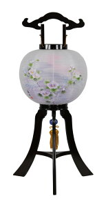 可憐な花模様が魅力の盆ちょうちんです。 サイズ:高さ83×径33(CM) 絹製二重・両絵入り火袋、木製枠、スイッチ付コンセントコード式電球付。