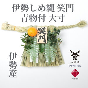 商品説明伊勢しめ縄 (玄関用) 大寸 青物付 笑門伊勢地方に古くから伝わる玄関飾りです。しめ縄本体、各部材、組立地との全て日本国内(主に伊勢市、度会郡)の純国産のしめ縄です。一年間を通して玄関にお飾りいただきます...