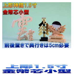 【神具】神具一式セット 上彫神鏡1.5寸と金幣芯小型と木彫り雲【上品】 神饌(お供え)神棚セット 【神棚・宮形・札宮・お宮用品】 備考 上彫神鏡1.5寸 大きさの目安:高さ約9.2cm 金幣芯小型 高さ約10.5cm