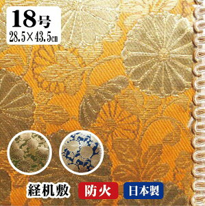 寸法:巾38.5cm×奥行25.3cm/材質:金襴製(防炎加工)/生産地:日本製 燃えにくい特殊な防炎加工を施した経机掛け(経机敷き)です。防炎タイプですので、線香やローソクが落ちても、すぐ燃えずに大切な経机を火から守ります。経...