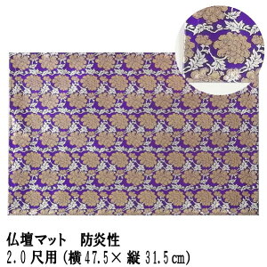 「仏壇マット 紫 2.0尺用」防炎仏壇マット 仏壇 マット 防炎 防火 マット 商品説明【商品コード:2686】■商品詳細●サイズ 2.0尺用:横約47.5cm×縦31.5cm●構成:ガラスクロス、アルミ箔、PET樹脂●製造国:日本防...