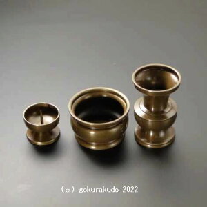 *サイズは画像内の寸法表示をご参照よろしくおねがいします。 上置き仏壇用に独自に開発しました3具足です。 上置き仏壇の場合スペースに限りがありますので、 1.花立ての口の広がりを通常より小さい目に押さえました...