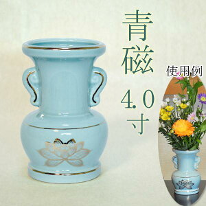 陶器製花立青磁色小型仏壇用の花瓶